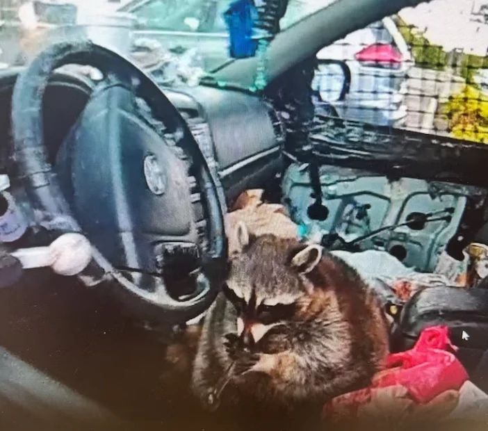 “As Officer Branham returned to the vehicle, he observed a raccoon named Chewy sitting in the driver’s seat with a meth pipe in its mouth,” the department said. “Chewy had somehow gotten hold of a glass methamphetamine pipe, prompting a more thorough search of the vehicle.”